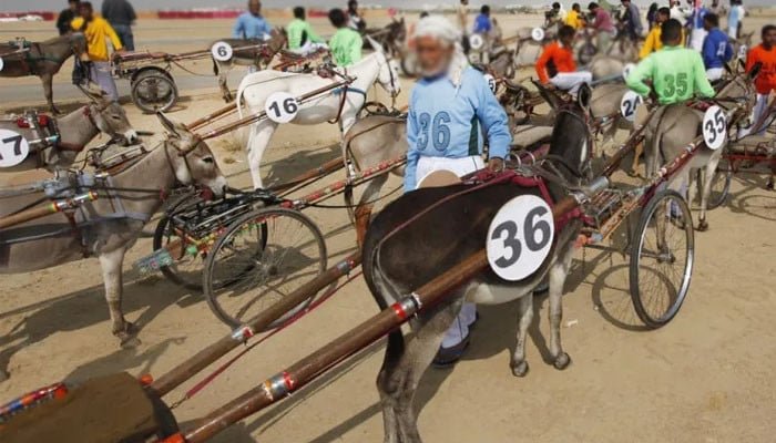 محکمۂ کھیل سندھ کے تحت جشنِ آزادی کے سلسلے میں باغِ ابنِ قاسم سے فریئر ہال تک گدھا گاڑی ریس منعقد کی گئی۔