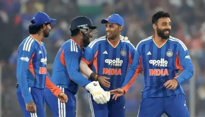 ابھیشک شرما، سنجو سمیسن، تلک ورما، ہاردک پانڈیا، شیوم دوبے، اکشر پٹیل، رنکو سنگھ، جسپریت بمرا، ہرشیت رانا، ارشدیپ سنگھ، کلدیپ یادیو، ورون چکرورتی، واشنگٹن سندر اور ایشان کشن بھارتی اسکواڈ میں شامل ہیں۔